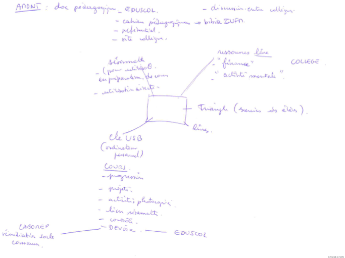 The general progression for grade 8 (pdf file to be downloaded) has been conceived by Vera at the beginning of the year (reminder: it was the first time that she taught at this level, see the teacher background folder). At this time, thi crucial resource appears as a daughter resource for Vera, resulting of a documentary work involving a lot of resources (textbooks, programs, institutionnal prescriptions,..). All along the following year, the general progression became a mother resource, supporting Vera documentaty work.