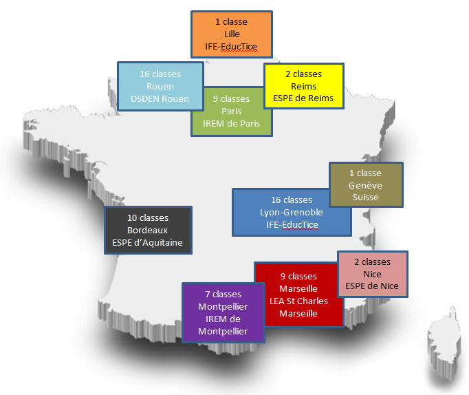 IREM de Paris 7, ESPÉ d'Aquitaine, ESPÉ de Grenoble, ESPÉ de Nice, ESPÉ de Reims, DSDEN de Rouen, EducTice-IFÉ.